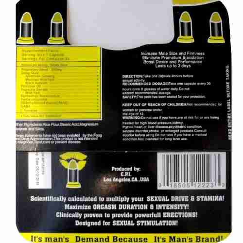 Night Bullet Male Enhancement Pill is the new breakthrough of male sexual medicine area, long term using can totally change your sex life. Taking one capsule maintain penis hardness for three day, and has the super strong sex desire you would never has before. Night bullet 3 day sexual stimulant has the function of increasing penis length, width, and help easy erect, increase semen secretion, delay sex time.
